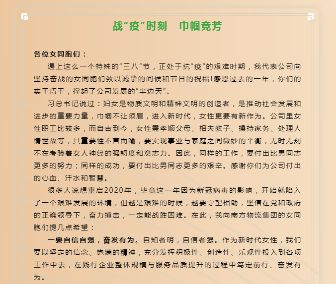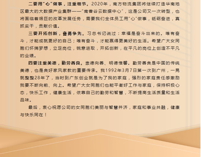 官金仙董事长暖心寄语全体女性职工。