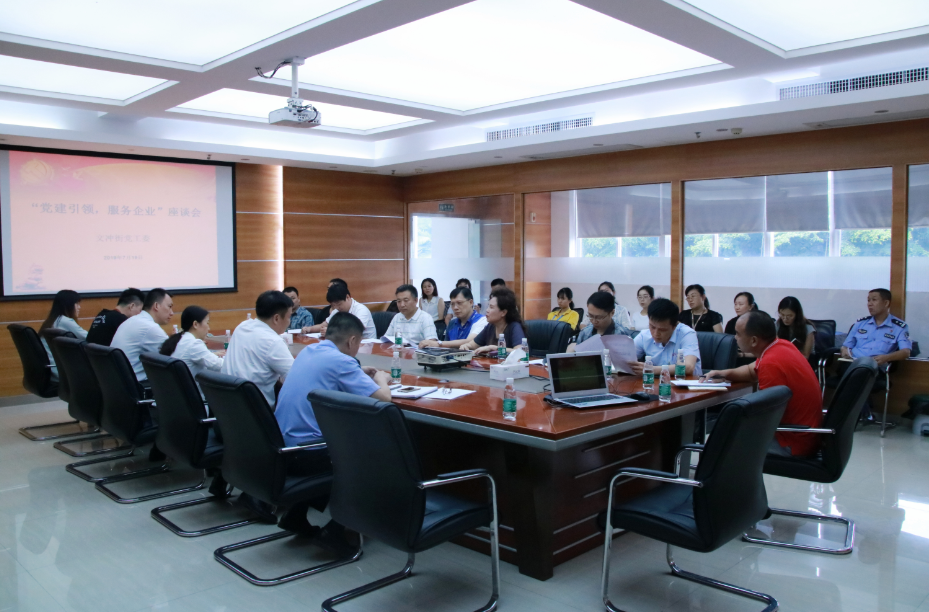 7月19日上午,文冲街党工委“党建引领 服务企业”座谈会在状元谷召开,为进一步加强“党建引领 服务企业”工作,切实为企业排忧解难、营造良好营商环境,文冲街书记陈鸿钦、副书记谢雪东、派出所所长原智华和组织办、经发办工作人员及网站名称、捷普电子、京东、苏宁、酒仙网、广州城投意谷科技股份有限公司等十余家企业代表参加了会议。